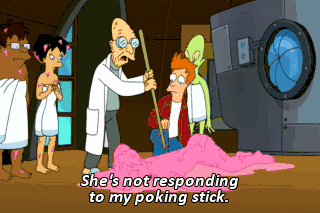 She's not responding to my poking stick. Poke harder, damn it! I'm poking as hard as I can!