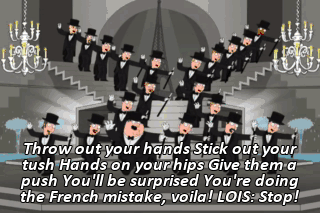 Throw out your hands Stick out your tush Hands on your hips Give them a push You'll be surprised You're doing the French mistake, voila! LOIS: Stop!