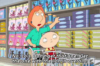 No, Lois, don't get that one! Get the one with the lion in overalls!