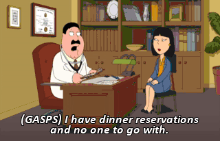 (GASPS) I have dinner reservations and no one to go with. Tonight's the night Let's live it up I got my money Hi, I'll be your wife's nurse.