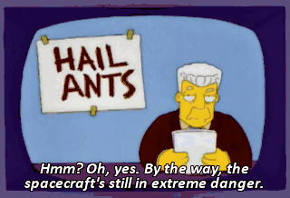 Hmm? Oh, yes. By the way, the spacecraft's still in extreme danger. May not make it back. Attempting risky reentry. Blah, blah, blah, blah, blah. We'll see you after the movie.