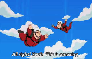 All right! Yeah. This is amazing. I know, it's unbelievable. Hey, guys, let's try to re-create this feeling for the rest of our lives, with drugs. Oh, it looks like it's almost time for us to pull our cords.