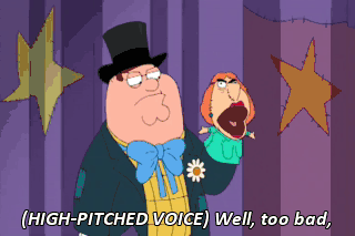 (HIGH-PITCHED VOICE) Well, too bad,