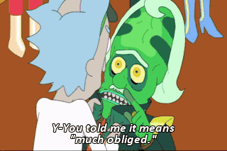Y-You told me it means "much obliged." Oh, Right. Uh, b-blow me. No, no, no. Blow me. Zeep, you have an honored guest from beyond the stars. I said 12 quantum stabilizers, not ll,