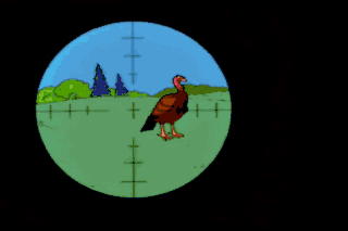 What the hell is that? A turkey! Dad's gonna slaughter that poor turkey! Not if I scare it away with this cougar call. You did it, Moe! A cougar! Die, cougar!