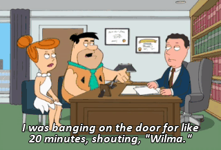 I was banging on the door for like 20 minutes, shouting, "Wilma." I didn't hear you.