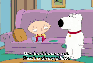 We don't have a cat. That's a throw pillow. (CRYING) Why have you brought me to the toy store, Brian? I'm buying you another Rupert. Hey, this one's cute, huh?