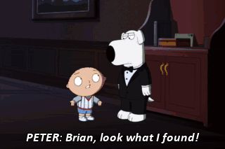 PETER: Brian, look what I found! Check it out! I'm a robot from outer space! Hang on. I'm coming down. Go, go, gadget skis!
