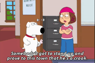 Somebody's got to stand up and prove to this town that he's a crook. And it looks like it has to be me. What was all the commotion? Oh, nothing, it was just... (GIGGLING) (SHOUTING)