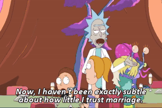 Now, I haven't been exactly subtle about how little I trust marriage.