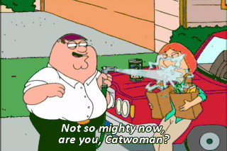 Not so mighty now, are you, Catwoman? Peter! Ahh! Take that! Take that! I spit water on you. Oh. Peter! Pe-- Batman, I can't breathe! Peter!