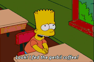Look! I fed the gerbil coffee! Ah! (INDIFFERENT GRUNT) Please, make me write something on the chalkboard a thousand times!