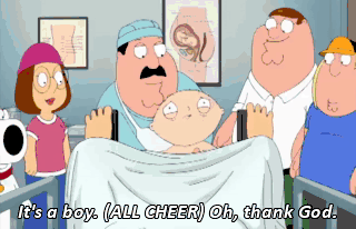 It's a boy. (ALL CHEER) Oh, thank God.