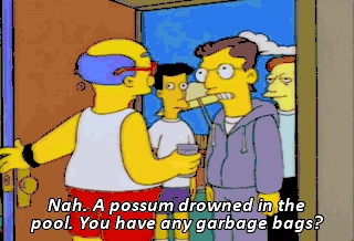 Nah. A possum drowned in the pool. You have any garbage bags?