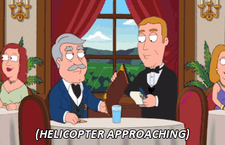 (HELICOPTER APPROACHING) Someone important must be arriving because they're making a big entrance. (MURMURING)