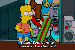 Willie! You want to buy my skateboard? Hey, why not? For once, it'll be all eyes on Willie! (GRUNTS) Look at me! I'm an American boy!