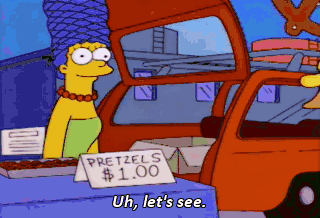Uh, let's see. I'll have one, uh-- Hey, hurry up. I wanna get my pretzel. - One pretzel. - Thank you. Let's see, uh, I will have one of your, uh--