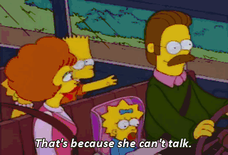 That's because she can't talk. Daddily-doodily. Where are we going? Where are we going?