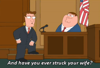 And have you ever struck your wife? Only in front of the kids to assert my status as dominant male of the pride. Are you a violent man?