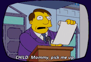CHILD: Mommy, pick me up.