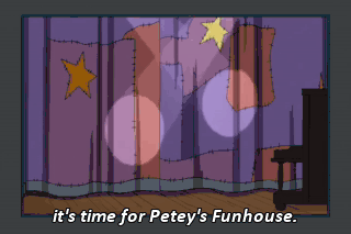 it's time for Petey's Funhouse. (AUDIENCE CHEERING) (PIANO PLAYING)
