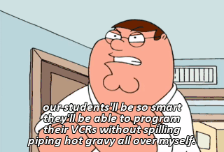 our students'll be so smart they'll be able to program their VCRs without spilling piping hot gravy all over myself.