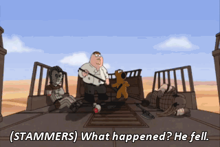 (STAMMERS) What happened? He fell. - Huh? - He fell. Fell in the pit. Oh! Good. Yeah.