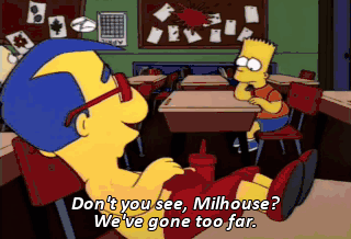 Don't you see, Milhouse? We've gone too far. We need Skinner back. My water dish is empty!