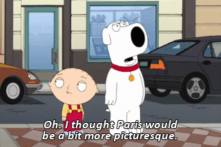 Oh. I thought Paris would be a bit more picturesque. Instead it's just traffic and some big guy using a jackhammer.
