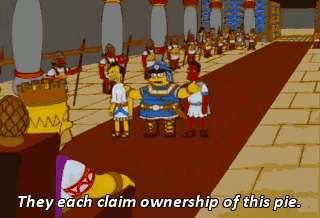They each claim ownership of this pie. Hmm. The pie shall be cut in two. And each man shall receive... death. I'll eat the pie.