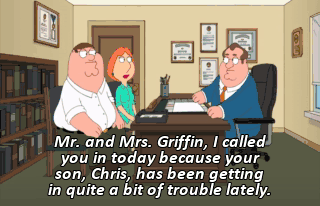 Mr. and Mrs. Griffin, I called you in today because your son, Chris, has been getting in quite a bit of trouble lately.