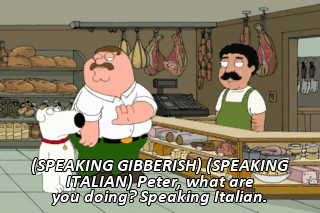 (SPEAKING GIBBERISH) (SPEAKING ITALIAN) Peter, what are you doing? Speaking Italian.