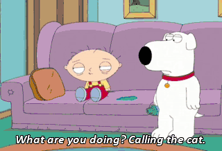 What are you doing? Calling the cat. We don't have a cat. That's a throw pillow. (CRYING) Why have you brought me to the toy store, Brian? I'm buying you another Rupert.