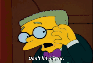Don't hit me, sir. Oh, that I had the strength to take it out on you, Smithers. Now, please go. I would be alone.