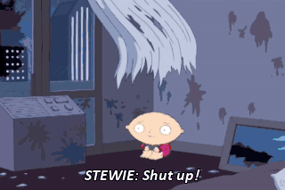STEWIE: Shut up! (MUSIC CONTINUES) Look into your heart, babe