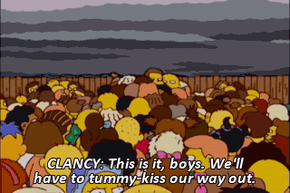 CLANCY: This is it, boys. We'll have to tummy-kiss our way out. (BLOWING TUMMY KISSES) (BABIES LAUGHING) LOU: This is a bouncer one here, Chief.