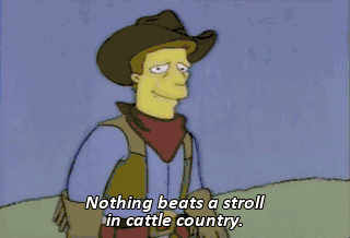 Nothing beats a stroll in cattle country. Hi, I'm Troy McClure. You may remember me from such educational films as Two Minus Three Equals Negative Fun! And Firecrackers: The Silent Killer. Mr. McClure?