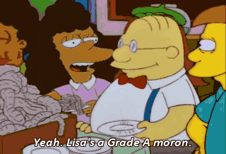 Yeah. Lisa's a Grade A moron. When I grow up, I'm going to Bovine University. Hi, Homer. Thanks for inviting me to your barbecue.