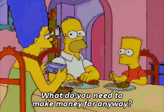 What do you need to make money for anyway? As long as I have my earning power, this family's got nothing to worry about. Ow! Oh! Call work and tell 'em I won't be in tomorrow.
