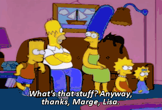 What's that stuff? Anyway, thanks, Marge, Lisa. Bart, do you have something nice to say to your father? Nah, he knows how I feel.