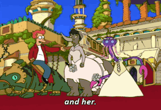 and her. Uh, eh, uh... This, um... Leela... this must all be very confusing. A little. That's why I've decided to hurt you until you explain it.
