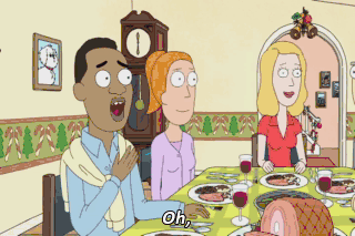 Oh, Jerry, this ham has got to be all you, right? It's incredible. Happy human holiday, Dad. Aah! Hepatitis won't follow us into the respiratory system.