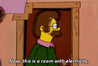 Now, this is a room with electricity, but it has too much electricity. So I don't know. You might want to wear a hat. Uh-huh. Floor feels a little gritty here.