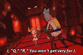 J, "Q," "R," You won't get very far J, I always hated that song! These halves don't belong together, bitch! Sex is sacred!