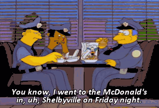 You know, I went to the McDonald's in, uh, Shelbyville on Friday night.
