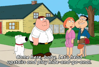 Come here, baby. Let's head upstairs and play hide-and-go-anal. (LOIS LAUGHING)