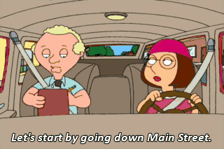 Let's start by going down Main Street. Ok. What are you doing? I'm driving. Duh.