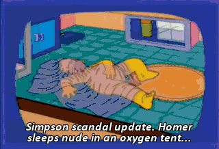 Simpson scandal update. Homer sleeps nude in an oxygen tent...