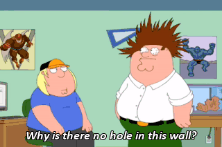 Why is there no hole in this wall? You know, this thing is bugging me. All right, I'm gonna take a hike. (THUD)