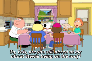 So, Lois, are you still pissed at me about Stewie being on the roof?